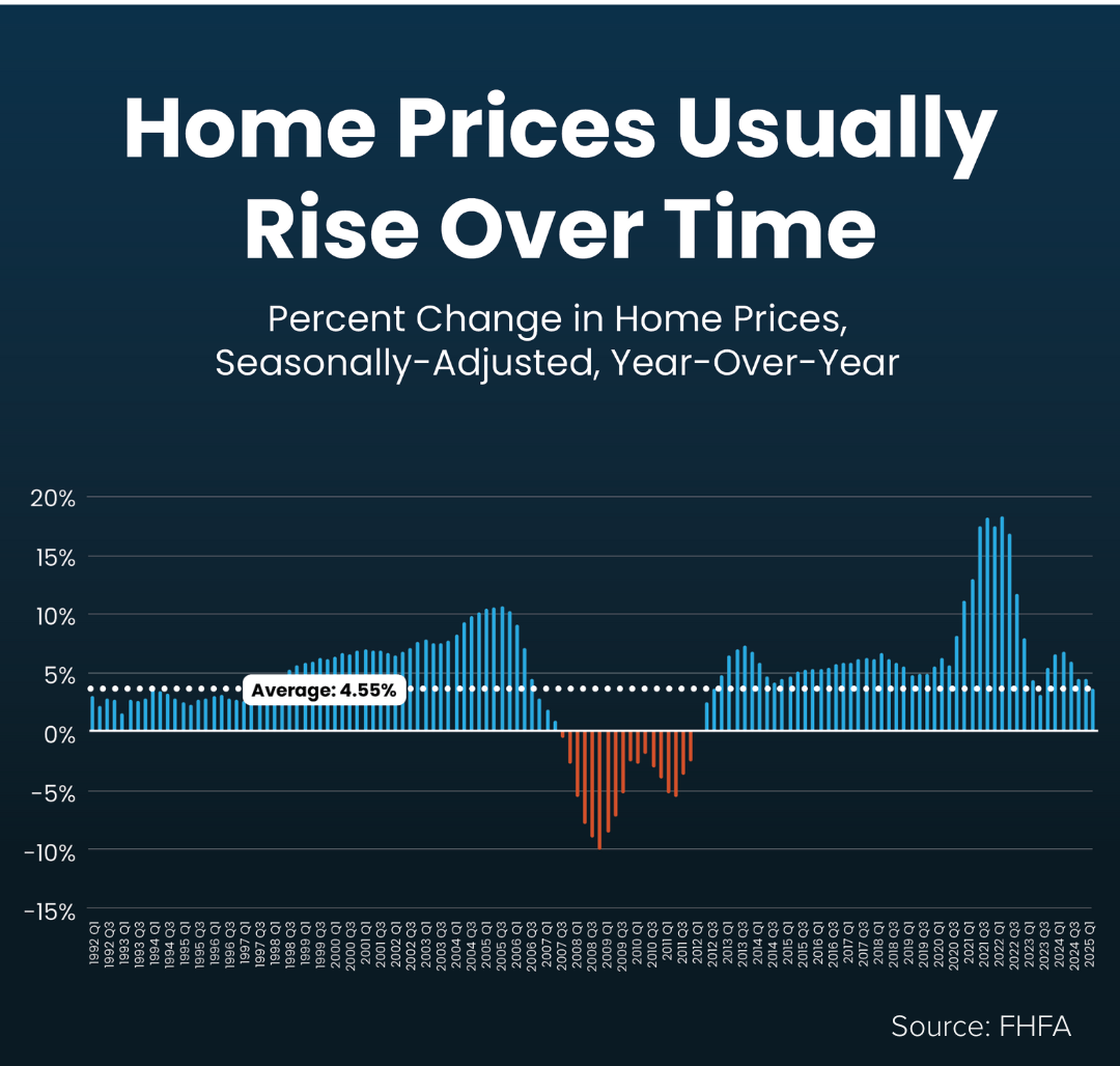 It is important to note that owning real estate is a long-term hold investment and not an overnight come up. The extreme ramp-up in home values from 2020-2022 skewed that viewpoint for some. A valuable rule of thumb to adhere to is the 5-year rule. Outside of the Great Recession of 2007-2012, holding for 5 years has overcome a flat market or any short-term dips in values. It’s also important to understand that your home serves two purposes: your safe place and an investment.